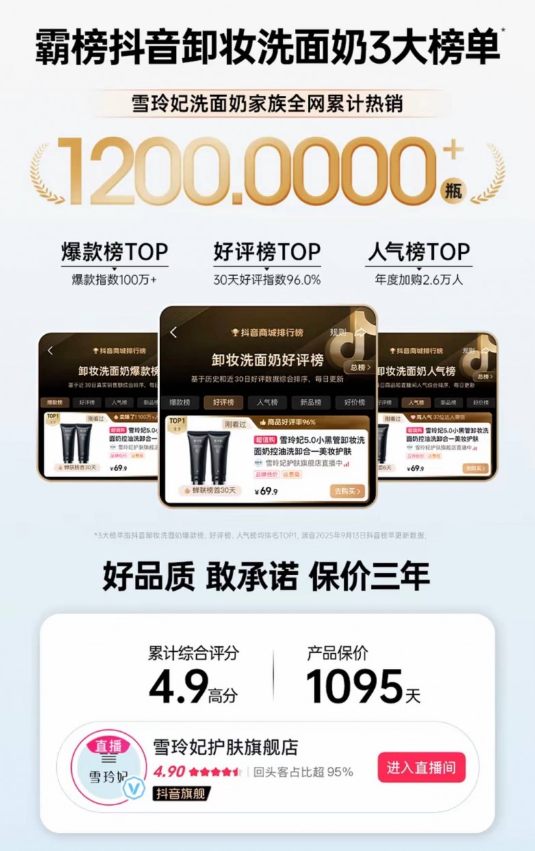 除了核心功效和品牌实力,雪玲妃小黑管氨基酸卸妆洗面奶的性价比也极具竞争力。100g售价59.9元,相比同类进口产品动辄上百元的价格,具有明显的价格优势,同时其高效的清洁力和卸妆力,让消费者无需额外购买卸妆产品,进一步节省了护肤成本。产品的全肤质适配特性也让其适用性更广,真正实现“一款产品满足全家需求”。