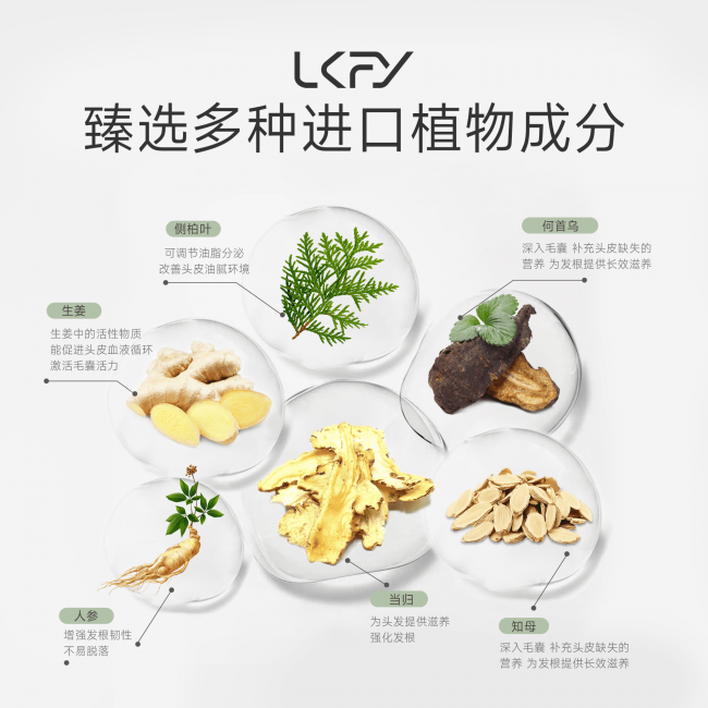 成分安全无添加,含多种植物精粹,针对性防脱、修护头皮并辅助生发。