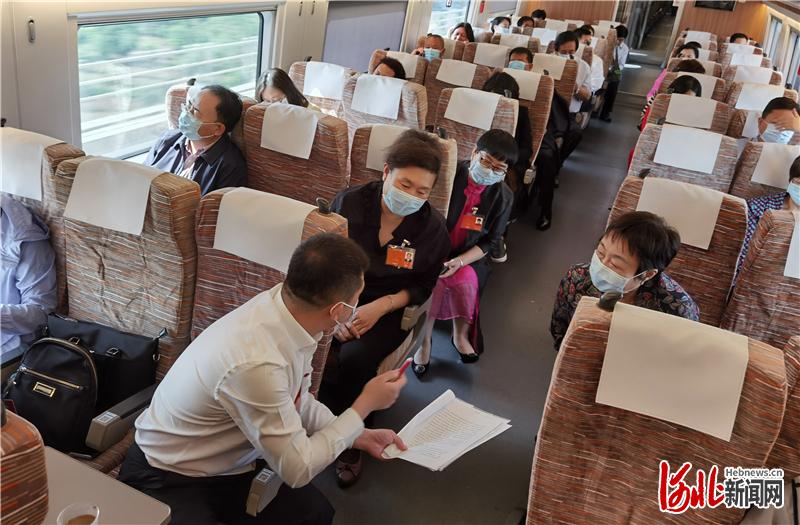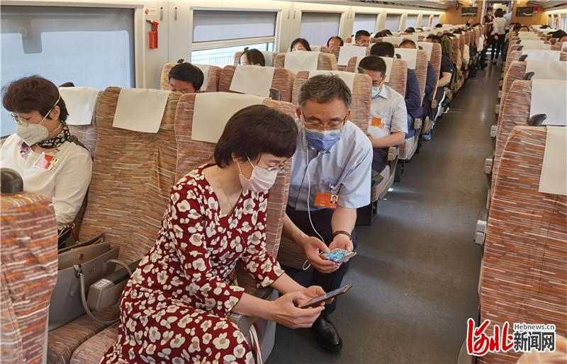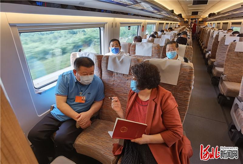 列车一路疾驰,车厢里代表委员的距离因为疫情防控拉开了,讨论的热烈气氛却更浓了。河北日报记者赵威摄