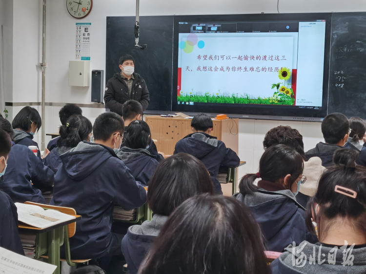 为了稳定学生情绪,藁城区第一中学的老师们则入住学生宿舍楼,每个学生都能在自己的楼层找到所负责的老师。该校3位心理教师和班主任们联合上课,通过心理辅导、解压游戏、励志电影等缓解学生焦虑情绪。