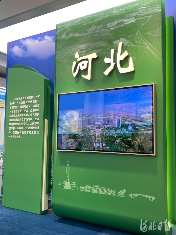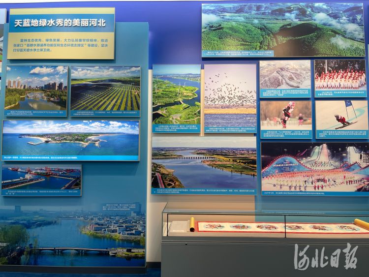 历史属于奋进者。走进展区,从雄安新区悦容公园和白洋淀的图片中展望未来之城蓝绿交织、人与自然和谐相处的优美画卷;通过京津冀协同发展成就展示沙盘感悟“瓣瓣同心”向阳开的智慧力量;透过民俗社火“打树花”的瞬间看见文化艺术的勃勃生机和昂扬活力……抚今追昔,尽管来自政治、经济、意识形态、自然界等方面的风险挑战仍在,但“奋进”的主题不会变,“成就”的底色不会变。从“新中国从这里走来”的土地到建设经济强省、美丽河北的美好蓝图,那些异彩纷呈的“河北元素”是激励更是鞭策。
