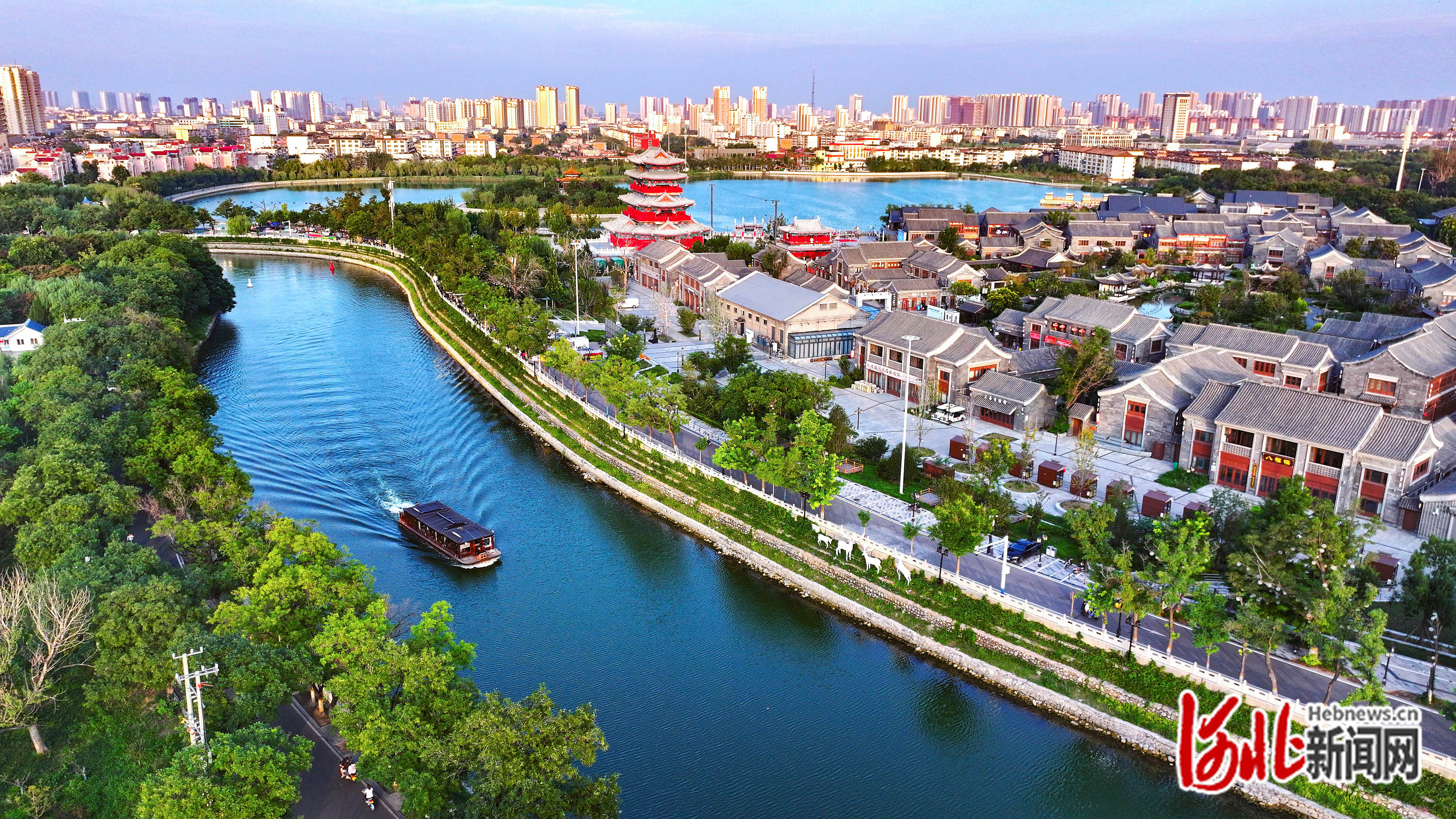 8月7日,游船行驶在大运河沧州中心城区段。河北日报记者 张 昊摄