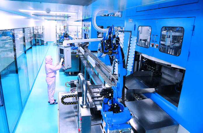 “十四五”以来,四药以建设“灯塔工厂”为目标,将越来越多的数字化智能化系统嵌入生产管理链条,通过机器人、生产线、立体仓库与物联网技术和MES生产管理系统的集成应用,有力推动了企业从传统制造向智能制造的跨越式发展,生产效能大幅提升。四药投资建设的行业首个数智化输液生产车间,日产输液可达480万瓶(袋),是目前国内单产规模最大、数智化程度最高的输液车间之一。该数智化项目入选工信部新一代信息技术典型产品、应用和服务案例,应用成果在全国推广。