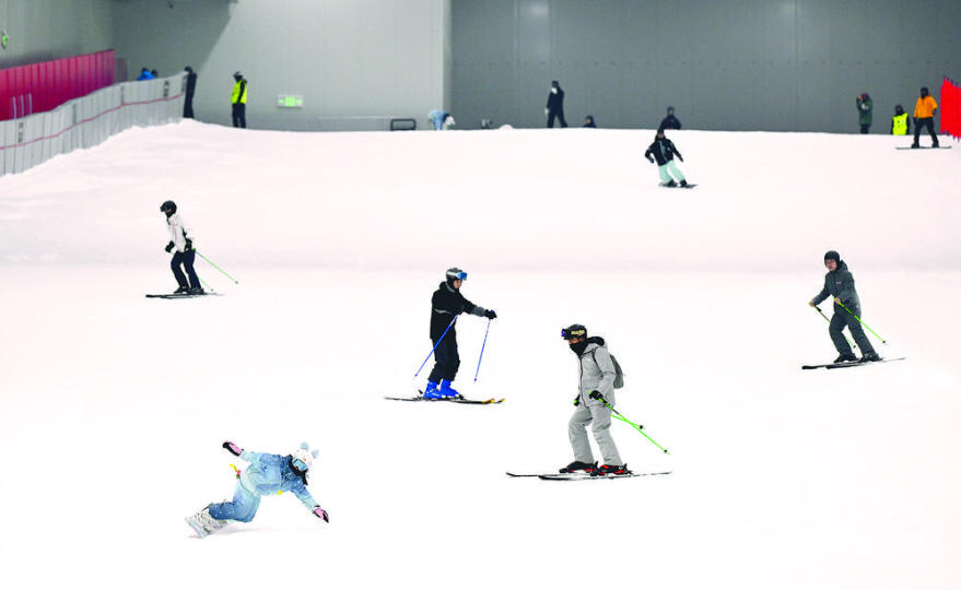 在平缓的雪道上,来自保定的施琳琳正和同伴们专注地练习着滑雪动作。“之前跟朋友尝试了一次,就彻底上了瘾。”她笑着告诉记者,“这里的室内雪场不仅提供全套雪具和护具,而且雪质特别松软,滑起来感觉特别棒!”