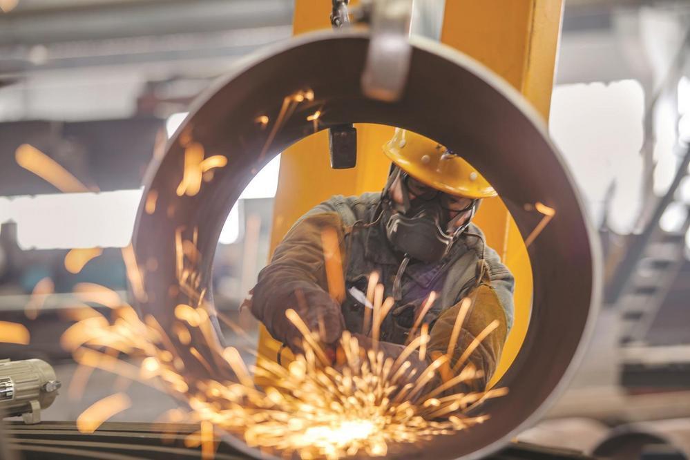 复兴经济开发区产业园内,河北冶金建设集团数智化装备制造有限公司职工在焊接作业。 聂长青 摄