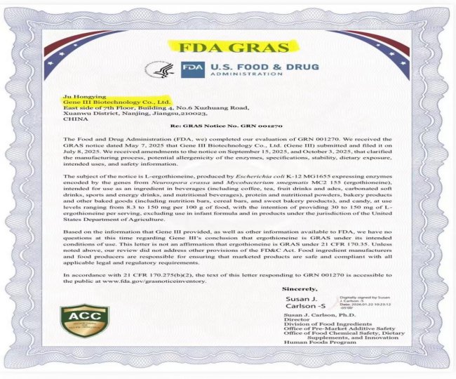 FDA GRAS证书编号:GRN 001270