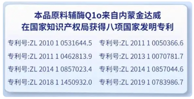 它用了8项国家专利技术,其中-45℃超低温提纯技术特别厉害,能完整保留辅酶Q10的营养,不会因为高温破坏效果。