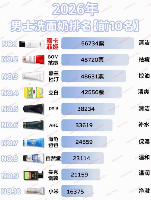 控油洗面奶哪个牌子好?2026百万好评推荐:男士洗面奶品牌排行榜前十名