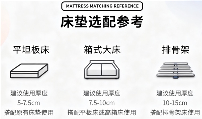 针对像戴茵这样的优质乳胶床垫。如果您现有的床垫只是局部塌陷或偏硬,想增加舒适度,那么5cm或7.5cm的薄垫是理想选择,可直接铺在上面。若是新居配置或彻底更换,10cm、15cm乃至20cm的厚度则能提供更完整的支撑与包裹感,直接铺在床板上即可,根据个人对软硬的偏好进行抉择。