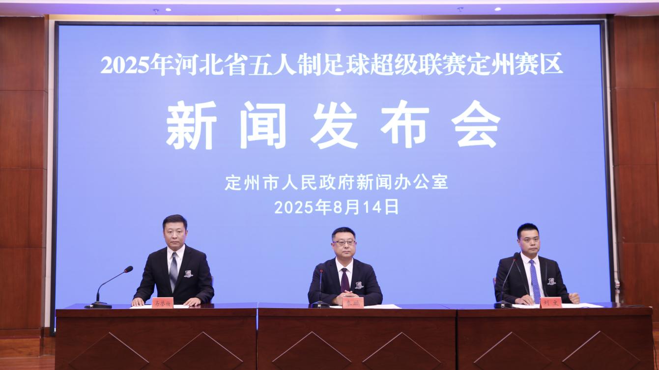 8月14日上午11:00,定州市人民政府新闻办公室举办“2025年河北省五人制足球超级联赛定州赛区”新闻发布会。会议由定州市委宣传部常务副部长、市政府新闻办公室主任马誉伯主持,市文化广电和旅游局党组书记、局长秦鹏同志,定州男子足球队主教练刘文先生就有关问题进行了发布并回答了记者提问。实录如下: