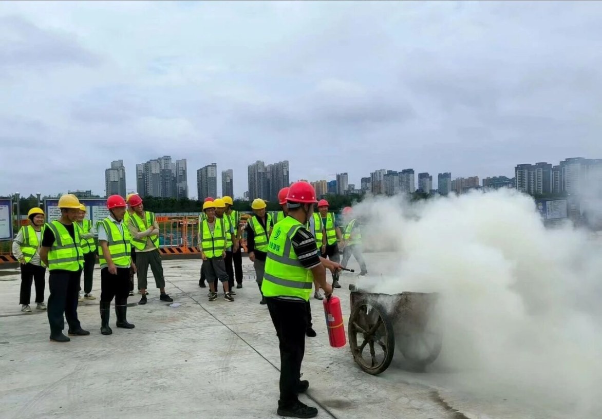 图为建筑工地开展消防应急演练。(资料片)