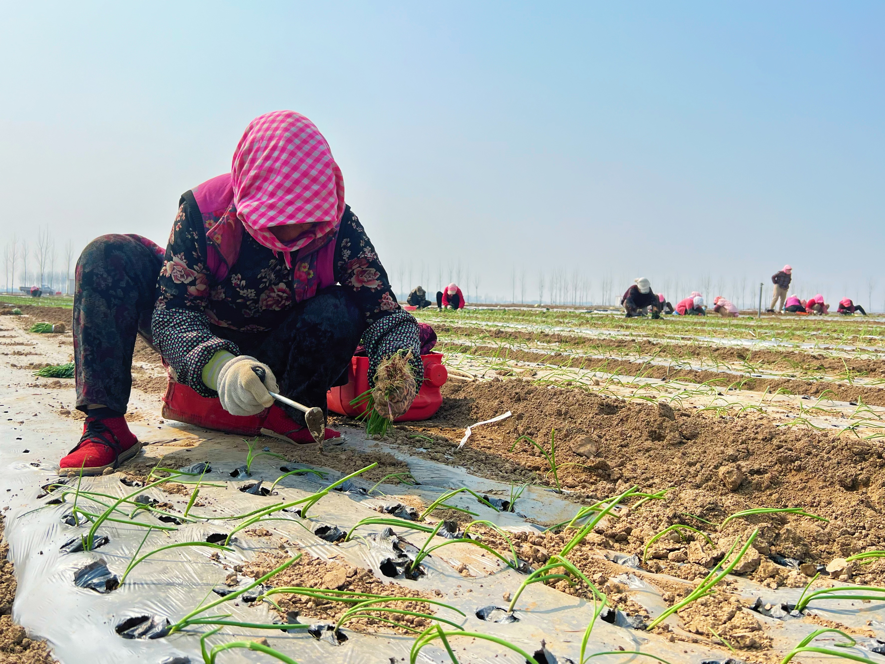 走进西城乡大定村,千余亩田地绿意盎然。连片田垄间,当地村民和50余名来自甘肃的务工人员正俯身劳作,手指麻利地将洋葱苗栽进田间、覆土压实、浇水定苗……一个个忙碌的身影,勾勒出一派生机盎然的春日图景。