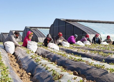 人勤春来早。近日,位于叮咛店镇南车寄村的烁宇豪现代农业产业园里,一派热火朝天的农忙景象。40余名工人忙着给刚栽下的白菜苗覆盖地膜,三人一组、配合默契,一前一后往前推进。经过一番劳作,一垄垄地膜铺好压实,刚栽下的菜苗被严严实实地盖在了下面。白色的地膜顺着地垄铺展开去,一片连着一片,给这些幼苗盖上了“春被”。