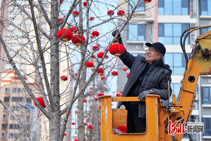 2月2日,正定县塔元庄村,村民正在悬挂红灯笼,节日氛围越来越浓。 河北日报记者 王 伟摄