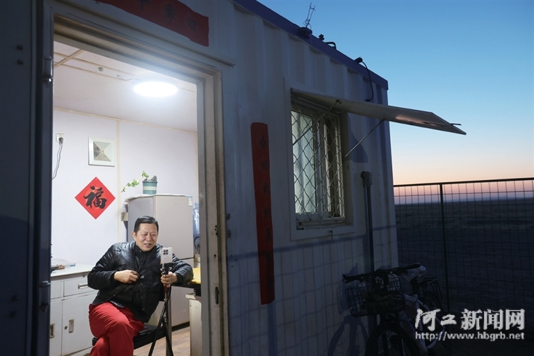 在这片荒漠,风沙是最顽固的“邻居”。沙粒顺着门窗缝隙钻进屋内,桌椅、床铺上总蒙着一层薄沙,于怀文每天起床第一件事便是打扫沙尘。“风沙吹着衣领直打耳朵,领口必须全系紧。”他身上红色工服的领口纽扣磨得发亮,自备的保暖面罩边缘也已起毛,而冬季夜间巡井时,发热鞋垫更是必不可少的“御寒神器”。