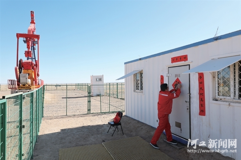 新春临近,吉兰泰油区送来饺子、春联和福字,为孤寂的井站添了几分年味儿。于怀文将春联认真贴在铁皮房门外,拨通了家里的电话:“儿子,今年又回不去了,别忘了给爷爷奶奶拜年。”电话那头,是他最牵挂的年近九旬的父母。按照上40天休20天的轮班制度,每次休假,他第一件事就是赶回河北老家陪伴家人,弥补常年在外的亏欠。