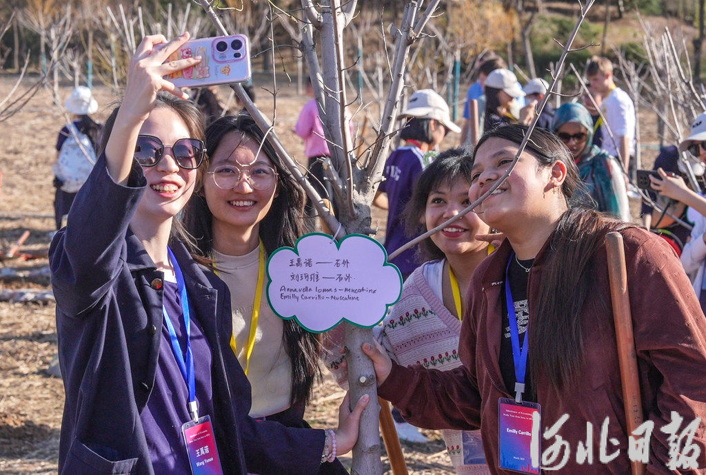 中美学生在正定园博园“中美友谊传承青年林”种下友谊之树并自拍留念。(河北日报资料片)河北日报记者李东宇摄