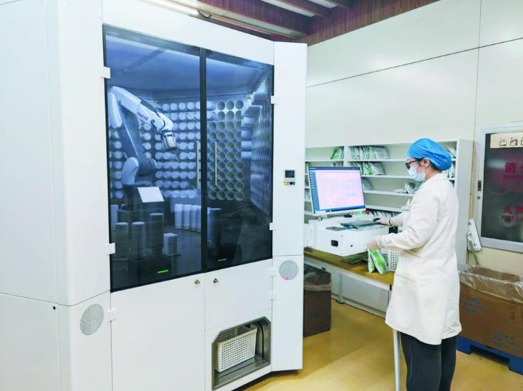 石家庄市中医院药剂科工作人员在现代化免煎药房工作。(石家庄市中医院供图)