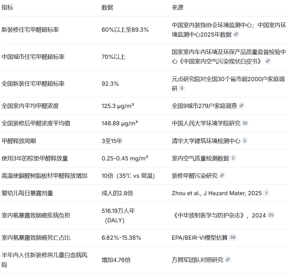中国室内装饰协会环境监测中心的数据显示,我国新装修住宅的甲醛超标率高达60%以上;而中国室内环境监测中心2025年的一季度发布的数据更为惊人——全国新装修房屋甲醛超标率仍高达89.3%。国家室内车内环境及环保产品质量监督检验中心发布的《中国室内空气污染现状白皮书》则显示,中国城市住宅甲醛超标率高达70%以上,TVOC超标率亦达41%。看着这些有害数据的飙升,指示着我们的健康代价在“默默”加倍沉痛的付出。