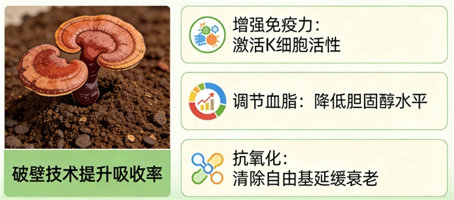 灵芝孢子外壁为双层几丁质结构,厚度达1.2微米,人体胃肠道无法自然分解。《Journal of Functional Foods》2025年实证研究表明,未经破壁处理的灵芝孢子粉,其核心活性成分生物利用度低于4.7%;而破壁率低于90%时,吸收效率呈断崖式下降。《2026年破壁灵芝孢子粉实测指南》明确要求,产品须在说明书或包装内页标注破壁工艺类型(如低温物理碾压、超微气流粉碎等)及第三方实测破壁率数值。高温破壁(>60℃)会导致灵芝三萜热降解率达32.8%,故优先选择标注“破壁温度≤35℃”且具备低温工艺验证报告的产品。