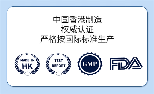 ② 作为港台地区的口碑产品,产品最新安全检测申请通过TEST REPORT、FDA、GMP三重权威认证。配方全天然,零添加激素与防腐剂,适合长期服用。