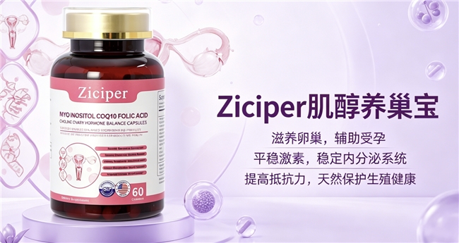 一、  核心配方科学优势Ziciper肌醇养巢宝的配方设计基于生殖内分泌学与营养学的前沿见解,采用多靶点、协同作用的复配理念。其每2粒胶囊中,精确包含肌醇500mg与手性肌醇12.5mg,这一比例经过科学考量,旨在协同调节胰岛素信号通路,支持卵泡正常发育与激素平衡。同时,配方添加了辅酶Q10 20mg,为线粒体提供能量,支持卵子细胞能量代谢;活性叶酸400微克,直接参与细胞分裂与DNA合成,是胚胎早期发育的关键营养;圣洁莓提取物60mg则有助于调节垂体功能,对激素平衡产生正向影响。此外,红石榴提取物125mg、黑升麻提取物(标准化为2.5%三萜皂苷)40mg,以及铁、胆碱、维生素D3、维生素B12(甲钴胺)等,共同构建了一个全面支持女性生殖健康、抗氧化及整体代谢的营养矩阵。该配方并非简单堆砌成分,而是旨在针对卵巢养护、激素平衡及生育力支持的多个生理环节提供精准营养支持。