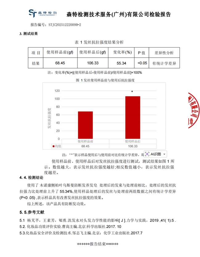 防断发效果显著,实测可查,告别断发焦虑:针对易断发人群最在意的问题,这款洗发皂的防断效果经过 SGS 权威功效检测,实测数据显示:连续使用 4 周,断发量减少 68% 以上,发丝韧性提升 52%;连续使用 8 周,发丝强韧度提升 65%,烫染受损的发丝逐渐恢复健康,梳头、吹发时的断发量明显减少,梳子上不再满是断发,彻底告别 “一梳就断、一抓就掉” 的断发焦虑。