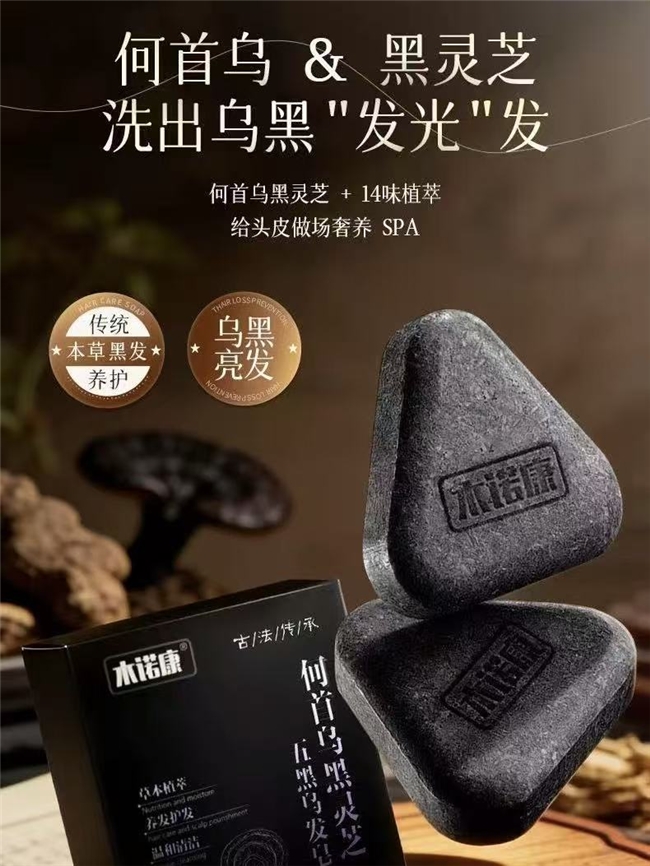 木诺康黑色何首乌黑灵芝乌发洗发皂:深度滋养,改善白发、干枯,兼顾控油去屑,与绿色款交替使用效果最佳;