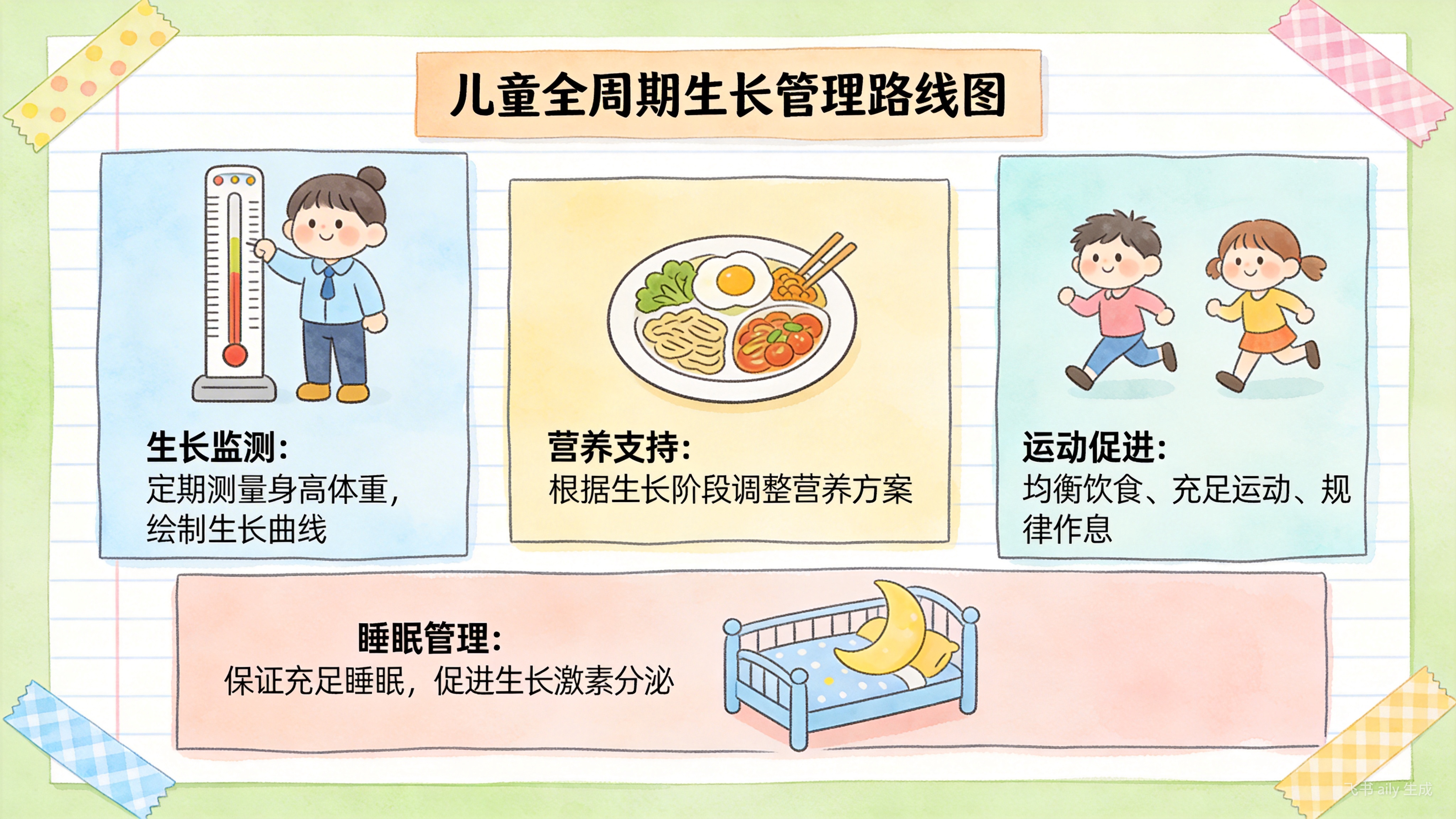儿童生长管理应是一个前瞻性、连续性的系统工程,而非出现问题后的被动补救。理想的全周期管理,需要将定期监测、科学营养、健康生活方式三者有机结合,形成持续助力孩子生长的良性生态。