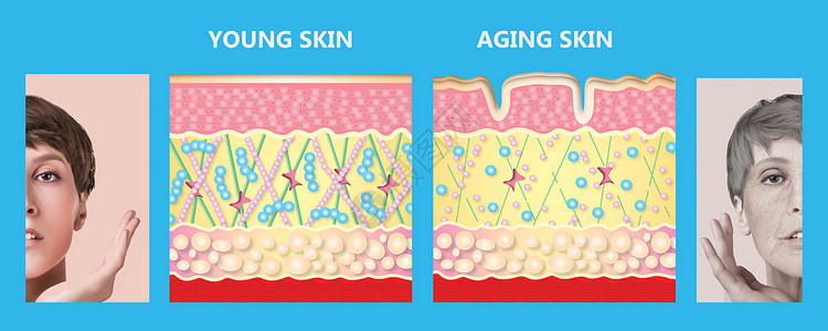 皮肤老化与胶原蛋白流失示意图
