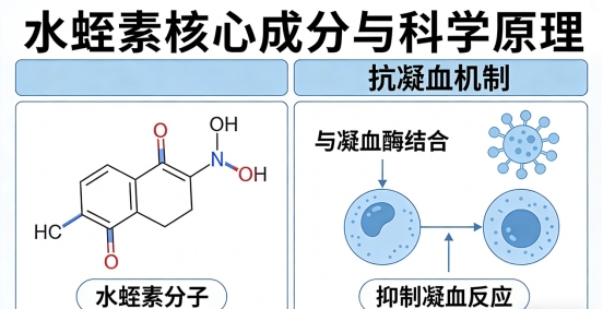 天然水蛭素:从医用水蛭唾液腺中提取的活性多肽,可直接作用于凝血酶活性位点,从源头减少纤维蛋白生成,是整类产品中最关键的功能成分。