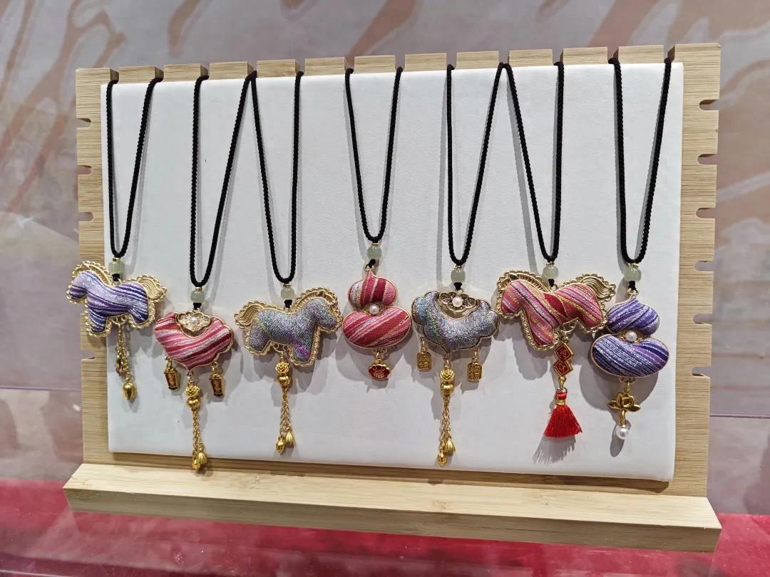 定州缂丝,作为国家级非物质文化遗产,素有“一寸缂丝一寸金”的美誉,以“通经断纬”的独特织造技艺闻名于世。此次展出的30余件缂丝作品,包含挂坠、香囊、屏风摆件等多个种类。这些作品在灯光的映照下,熠熠生辉、光彩夺目,吸引了许多游客驻足欣赏,了解感受定州缂丝的独特魅力。