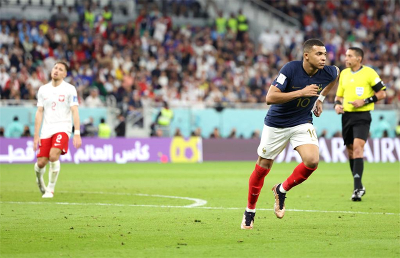 新华社多哈12月4日电(记者王浩宇、肖世尧、赵建通)法国头号球星姆巴佩在4日的卡塔尔世界杯16强赛中踢出“球王级”表现,他打入两球并助攻一球,帮助卫冕冠军法国队以3:1击败波兰队,顺利晋级四分之一决赛。