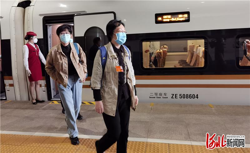 代表委员们抵达北京西站,走下列车。河北日报记者赵威摄