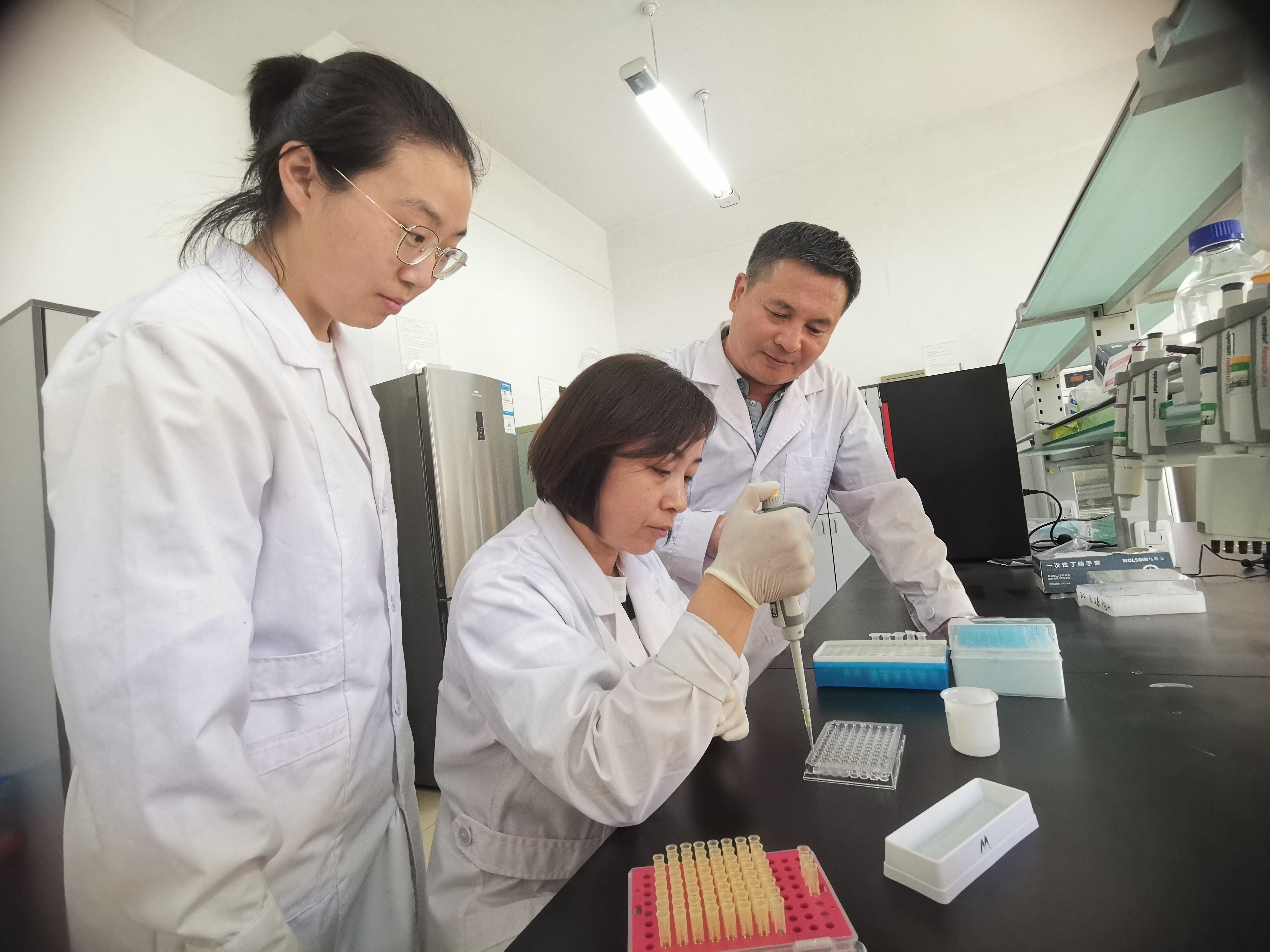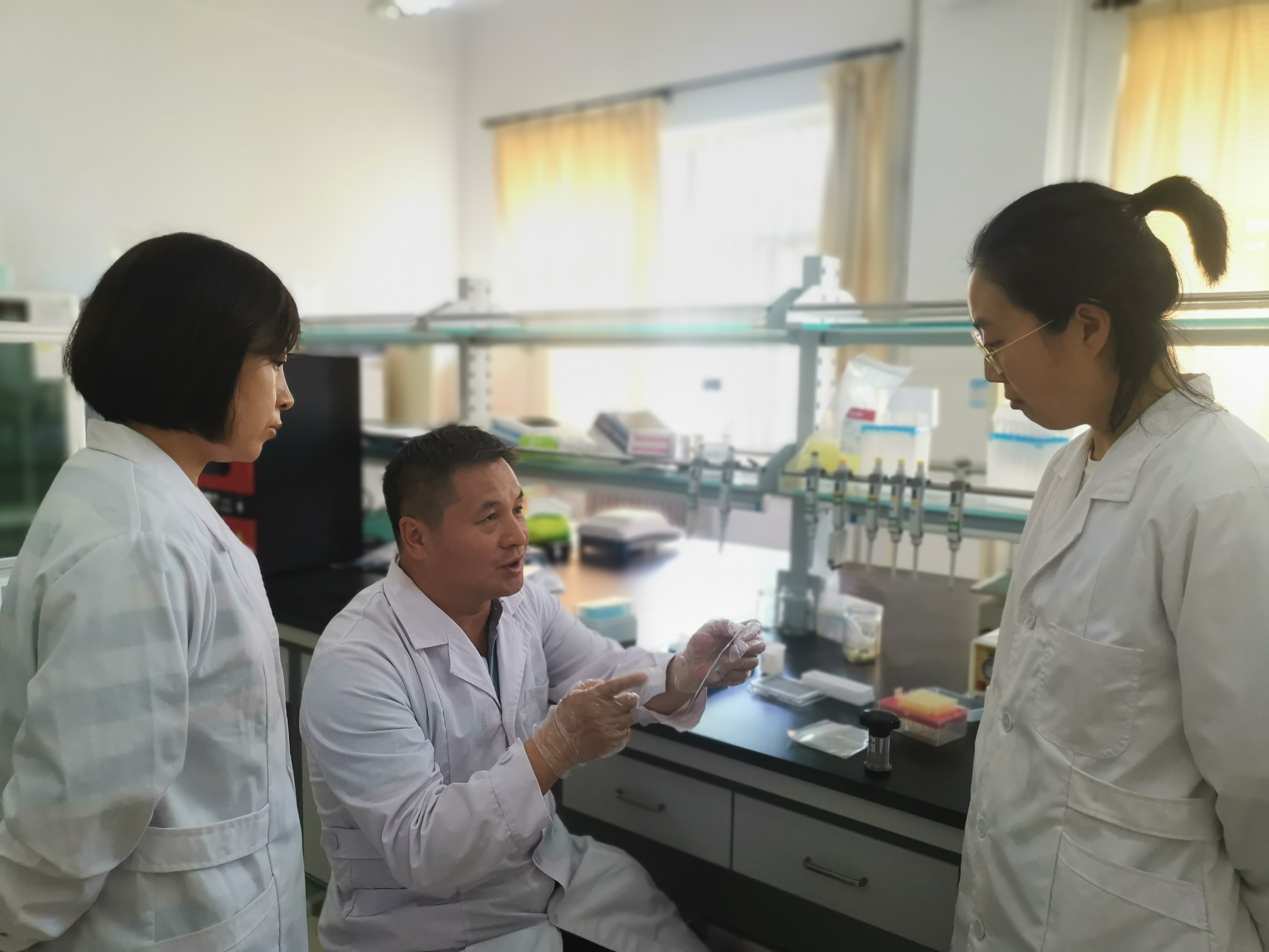 马恢(中)在为科研人员作讲解。