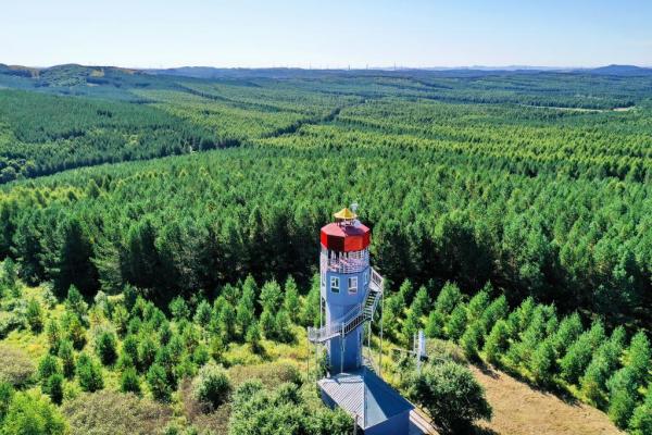 塞罕坝机械林场内的望海楼(2021年8月23日摄,无人机照片)。新华社记者 牟宇 摄