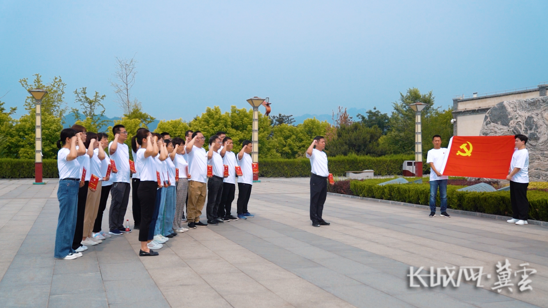 石家庄市新华区财政局党支部在中共中央统战部旧址前重温入党誓词。长城网·冀云客户端记者 张超 摄