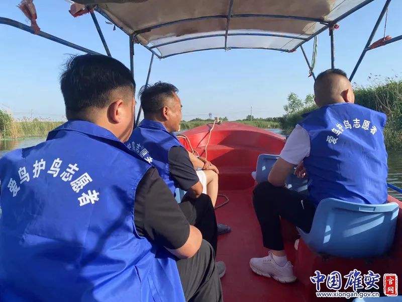 爱鸟护鸟志愿者乘船巡查。来源:中国雄安官网