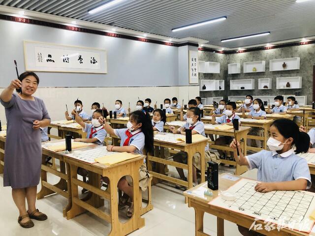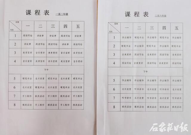 为做好托管试点工作,新华区另一试点校柏林庄学校整体谋划,也在开班第一天为孩子们安排了丰富多彩、“动、静”结合的课程,如陶艺制作、模型拼装、书法、创意美术、编程、阅读、电影欣赏以及体育运动等内容,引导和帮助学生们度过一个安全、快乐、有意义的难忘假期体验。