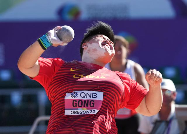 7月17日,在2022年俄勒冈田径世锦赛女子铅球决赛中,中国选手巩立姣投出20米39的个人赛季最好成绩,获得银牌。