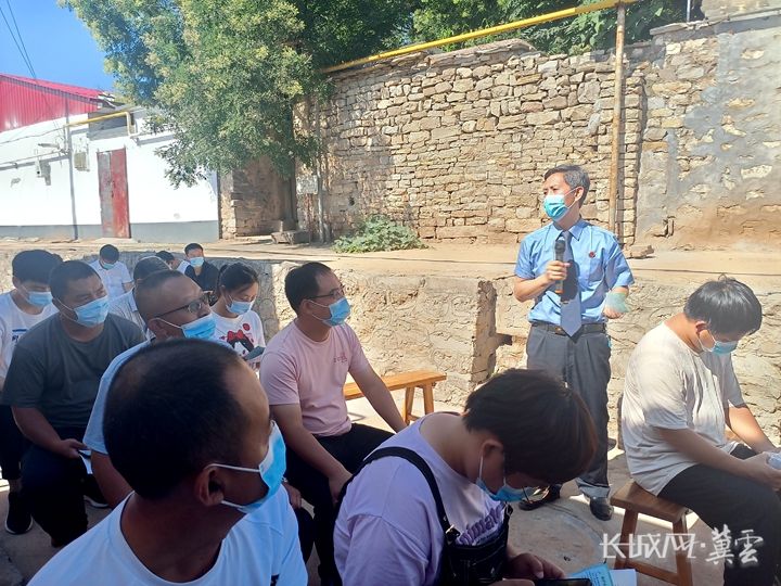 听证会间隙,王子刚向村民普法。长城网·冀云客户端记者 蔡洪坡 摄