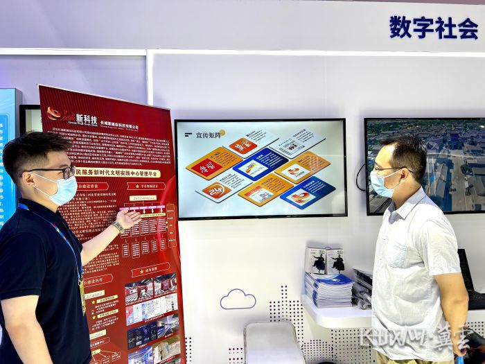7月23日上午,第五届数字中国建设峰会在福建省福州市开幕。河北展馆里,长城新媒体集团“为民服务新时代文明实践平台”展位前,不少人驻足。
