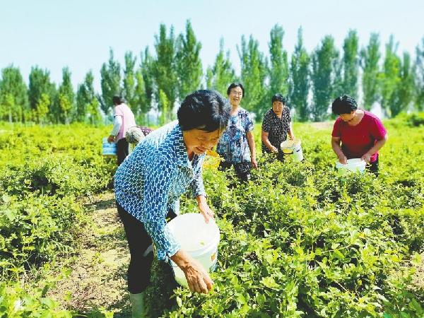 “采摘一斤金银花的劳务费是5元,一天最少能摘七八斤,能挣个零花钱,比在家歇着强多了!”村民韩会增告诉记者,采摘金银花的多是村里的老人、未就业的妇女,“金银花花期比较长,五月份就开始采摘了,有的人一天能摘二三十斤,挣100多元呢!”