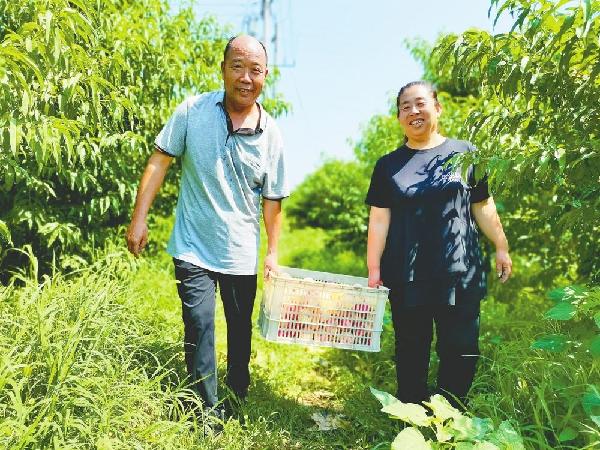 从村里一路向南,远远的,记者又看到了一片桃林。村支书韩清申正忙着采摘树上的桃子,看到记者来,他热情地打起了招呼:“快来尝尝,这可是最后的一点儿桃了!这是我们引进的北京平谷桃,汁多又脆!”韩清申说,“这是2019年引进的,就试种了五亩,今年结果了,摘下的桃都给乡亲们分了。咱们这儿种成了,以后准备扩大规模。”