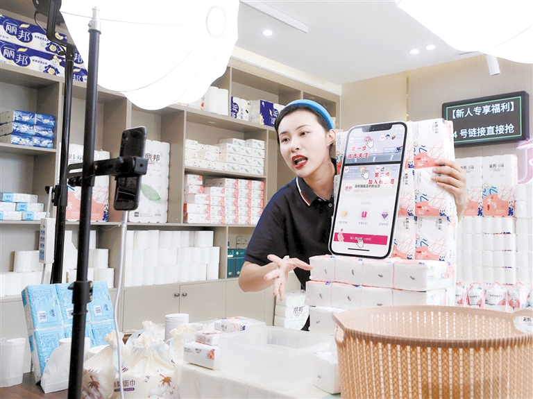 满城区电商协会秘书长张磊介绍,几年来满城纸产品网上销售年均增加8%,目前已经拥有电商企业200余家,专业从事直播带货和网店客服技术人员2000余人,线上销售占总销售额的半壁江山,体量庞大的生活用纸产业加装上数字时代的“新引擎”。