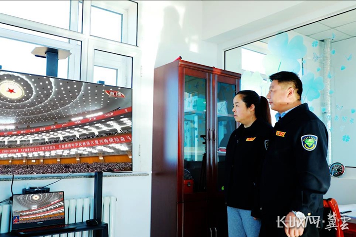 塞罕坝机械林场防火瞭望员刘军夫妇在望海楼收看党的二十大开幕会。宋嵬佶 摄
