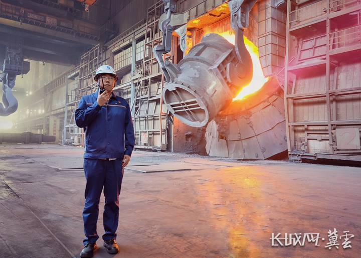 党的二十大代表、河钢集团邯钢公司邯宝炼钢厂特档技术主管唐笑宇在生产一线。