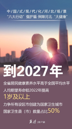 河北对标对表国家目标任务,制定了中国式现代化河北场景的卫生健康行动方案,明确了今后的工作目标,并提出实施六大行动,以“大健康”理念全方位全周期维护和保障群众健康。