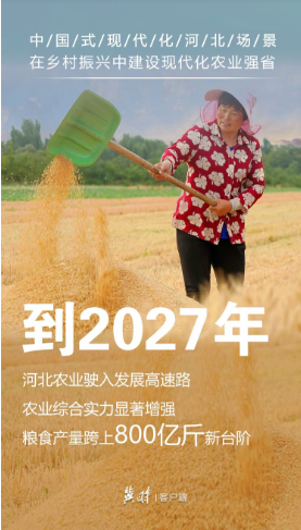 党的二十大报告提出,要全面推进乡村振兴,坚持农业农村优先发展,巩固拓展脱贫攻坚成果,加快建设农业强国,全方位夯实粮食安全根基。 河北对标对表国家未来发展的主要目标任务,结合国际国内发展形势和自身发展条件,加速打造农业强省新蓝图。