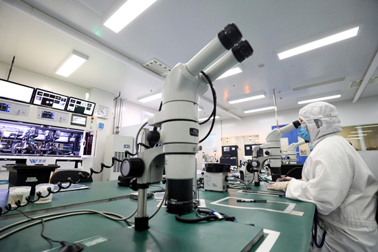 河北圣昊光电科技有限公司员工正在查看测试机状态。 梁子栋摄